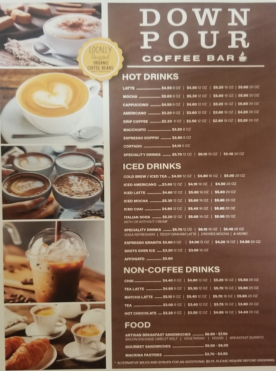 Welcome to Downpour Coffee and Sandwich Bar, a charming gem nestled in Redmond, WA. This cozy café offers a delightful menu that caters to both your caffeine cravings and your appetite.